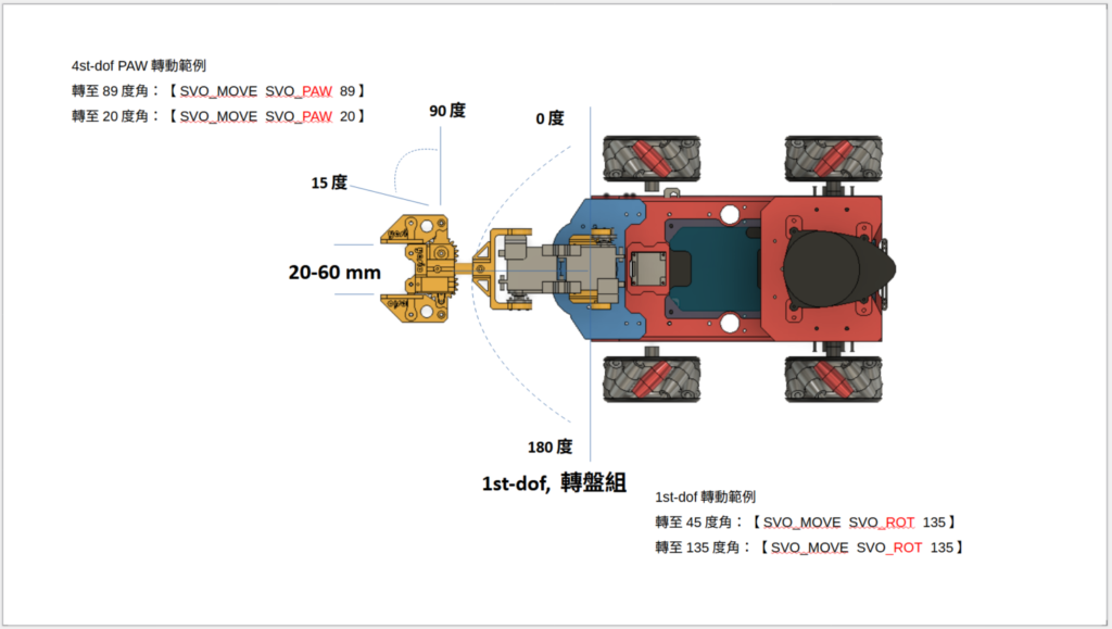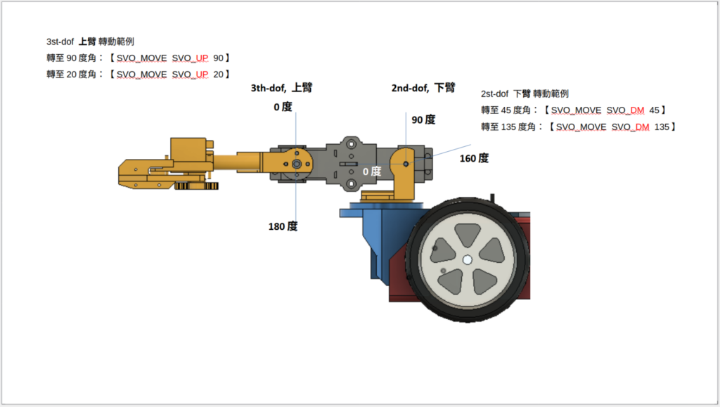 【0xB1】命令:分別對各軸MG995伺服馬達下達角度(角度範圍,請依據下圖各軸機械角規範)。