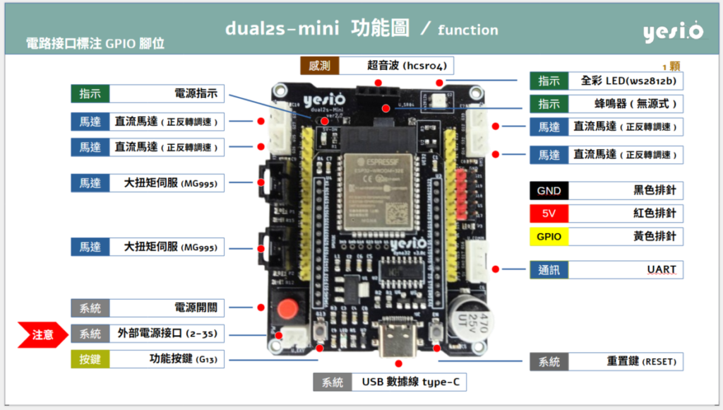 - 電路板接口全面標註GPIO腳位號碼。